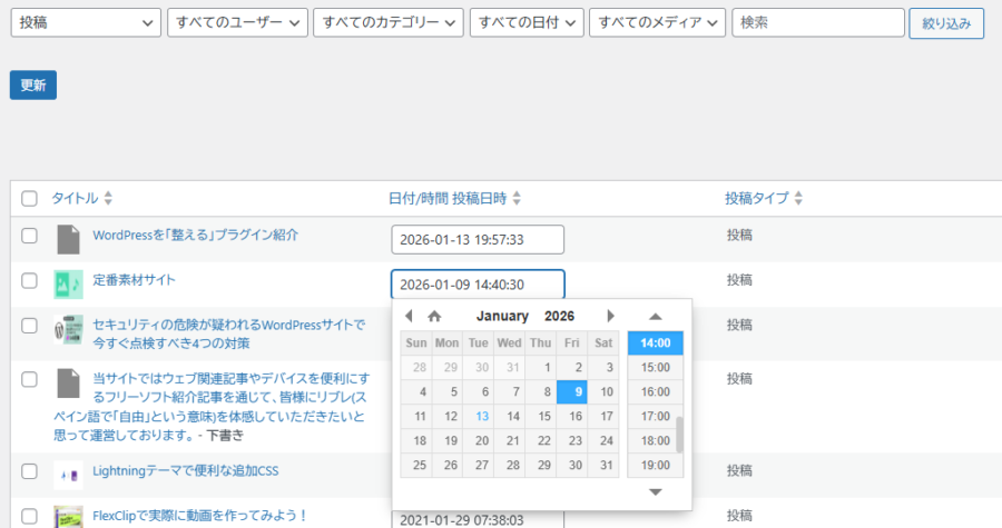 標準の「クイック編集」でも日時変更はできますが、1件ずつ操作するのは非常に手間です。