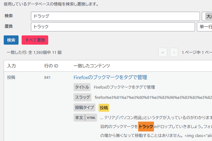 思わぬ箇所まで置換される可能性があるため、必ずバックアップを取ってから使用しましょう。